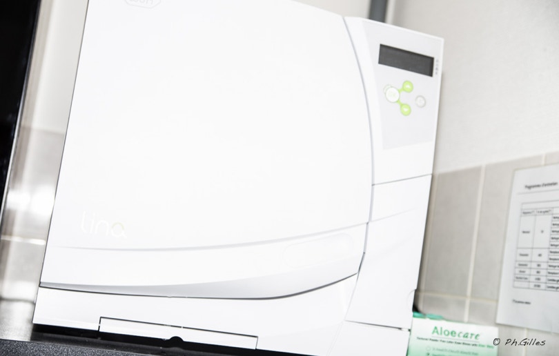 4. Stérilisation dans l’un de nos deux autoclaves dernière génération de classe B recommandé par le conseil technique de l’art dentaire